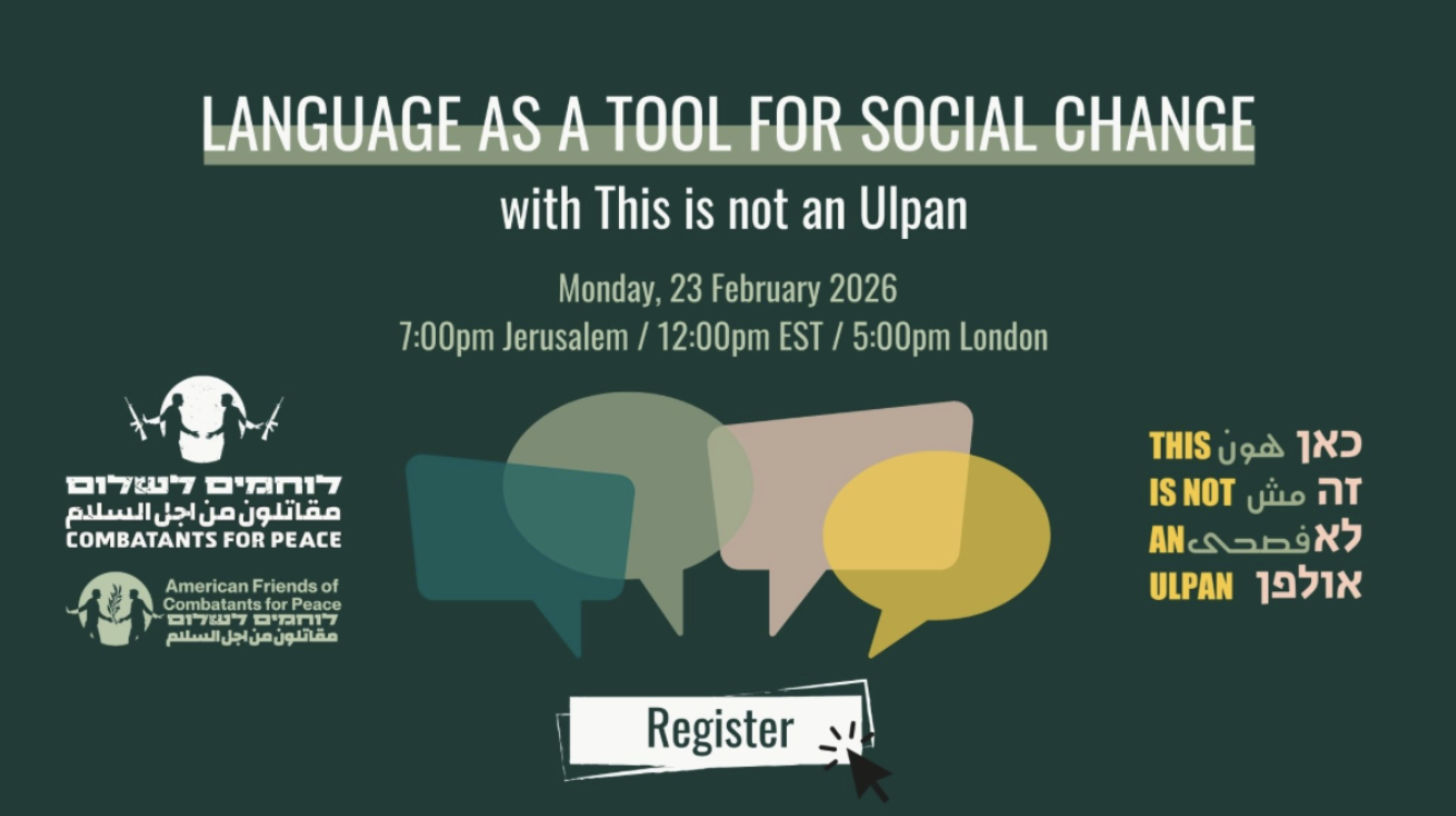 At Combatants for Peace, Israelis and Palestinians work together every day, and we know from experience that the words we use matter. We hope you will join us for this important conversation.